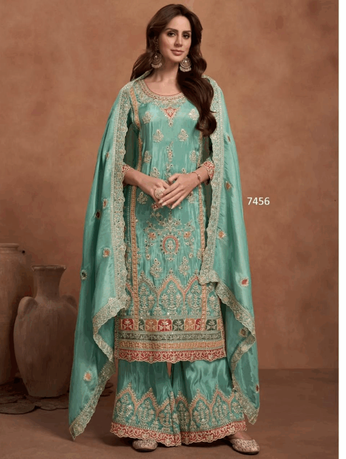 Leeza Designer Aqua Ethnic Suit with Dupatta