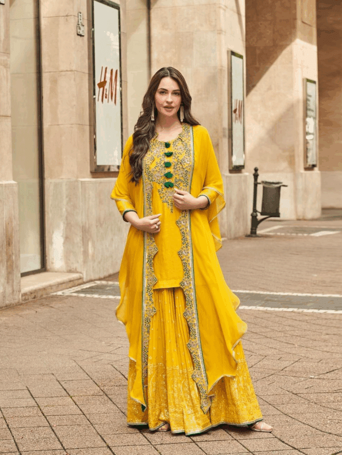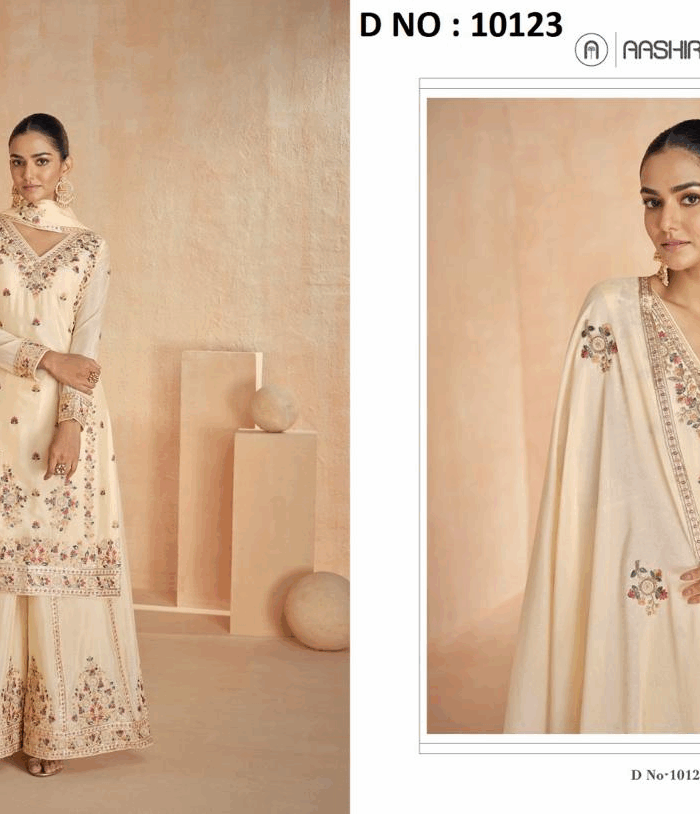 Leeza Elegant Cream Sharara Ensemble with Embroidery