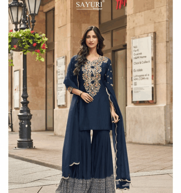 Leeza Navy Elegance Floral Kurta Set
