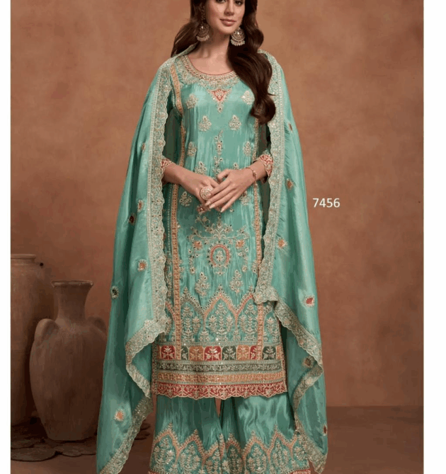 Leeza Designer Aqua Ethnic Suit with Dupatta