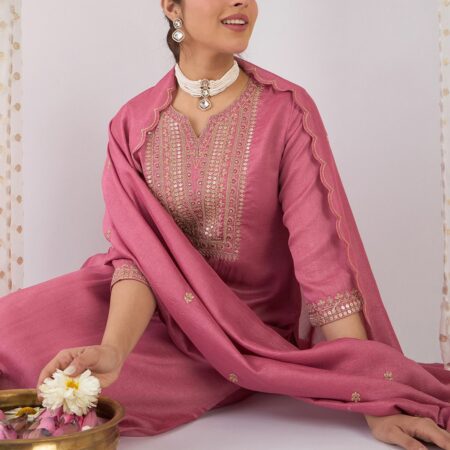 Leeza Elegant Rose Pink Embroidered Kurta Set