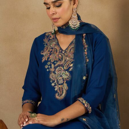 Royal Blue Embroidered Kurta Set with Dupatta