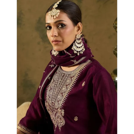 Leeza Royal Plum Embroidered Silk Kurta Set