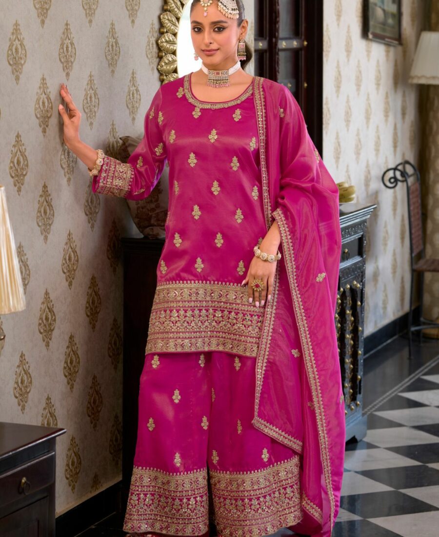 Leeza Fuchsia Pink Embroidered Sharara Suit