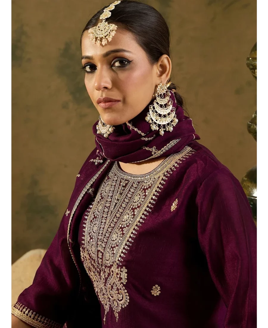 Leeza Royal Plum Embroidered Silk Kurta Set