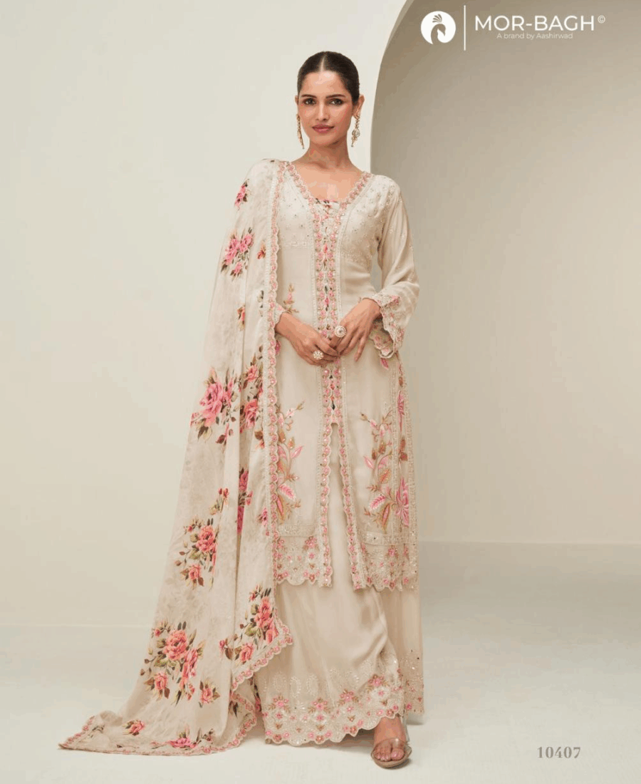 Leeza Elegant Cream Sharara Ensemble with Embroidery