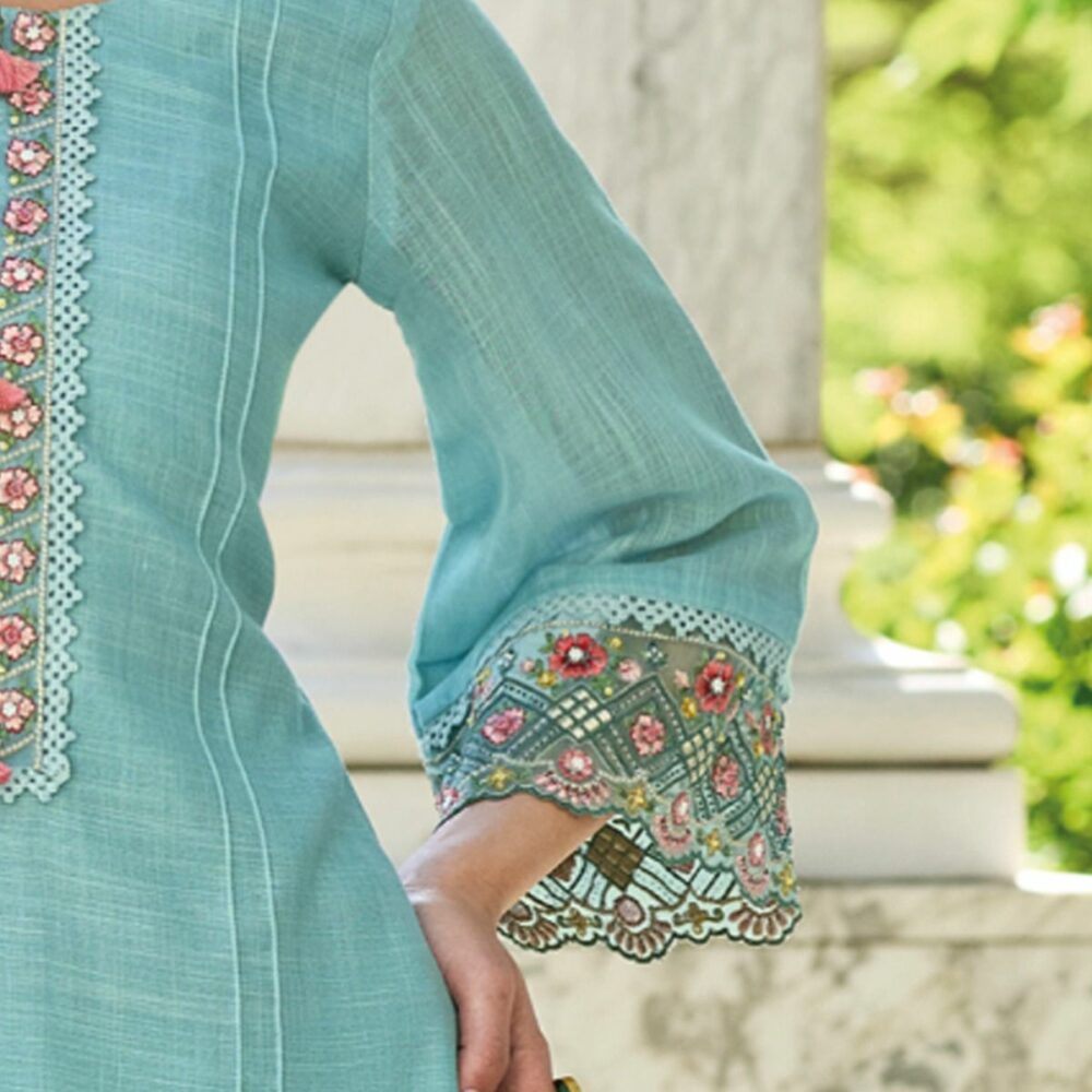 Three-Quarter Sleeves with Embroidered Hem