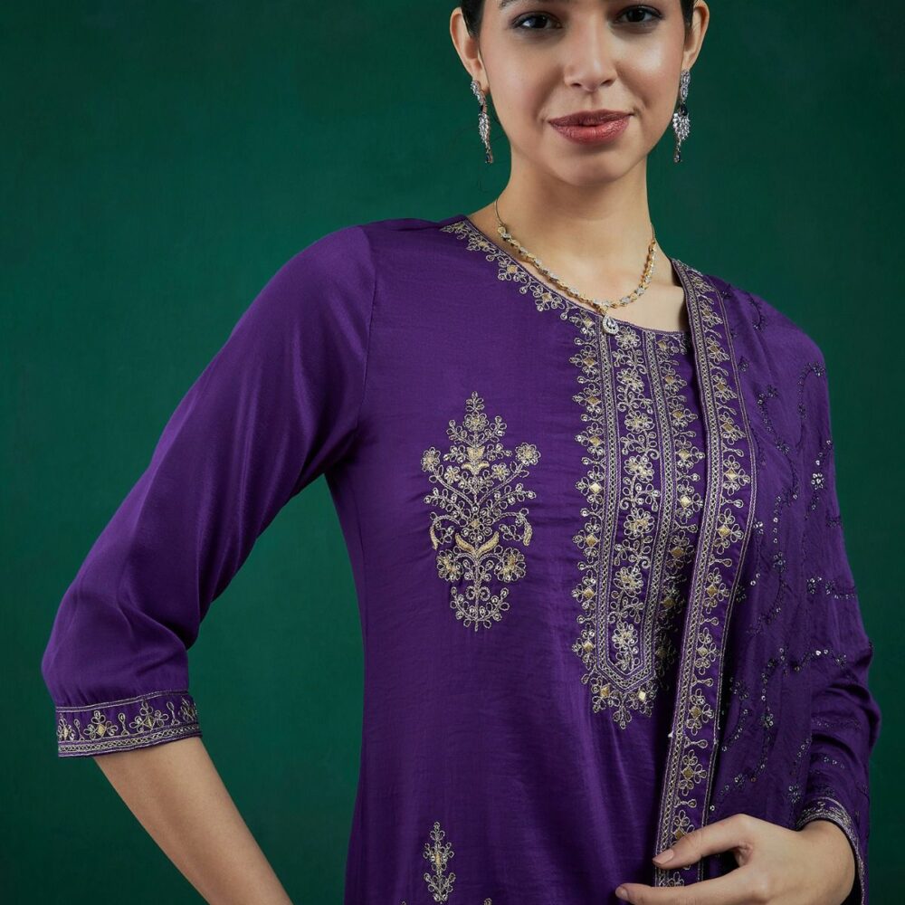 Leeza Regal Purple Embroidered Silk Blend Suit Set