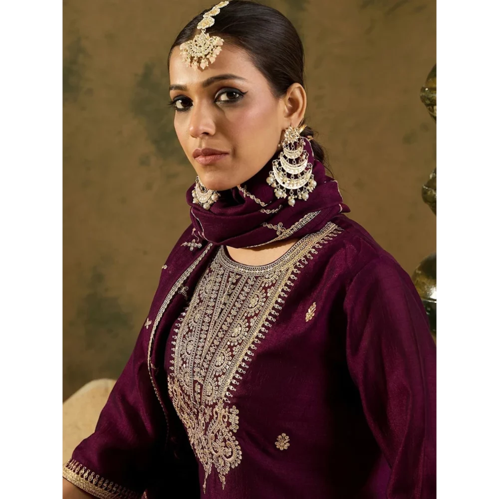 Leeza Royal Plum Embroidered Silk Kurta Set